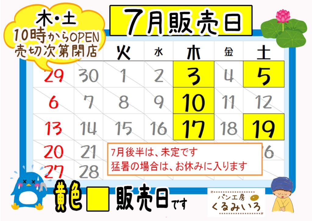7月の販売日 2025/06/27 10:09 この記事は約1分で読めます。 7月販売日 木、土10時~売切次第終了 12日土曜日はお休みです7月後半は未定です。猛暑の場合は、お休みさせて頂きますよろしくお願いします