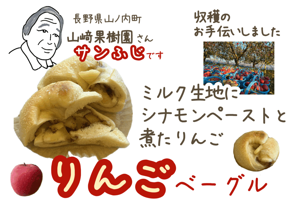 りんごは、11月に収穫の、お手伝いをした長野の山ノ内町の山﨑果樹園さんのサンふじです。シャキッと感のあるりんごです!